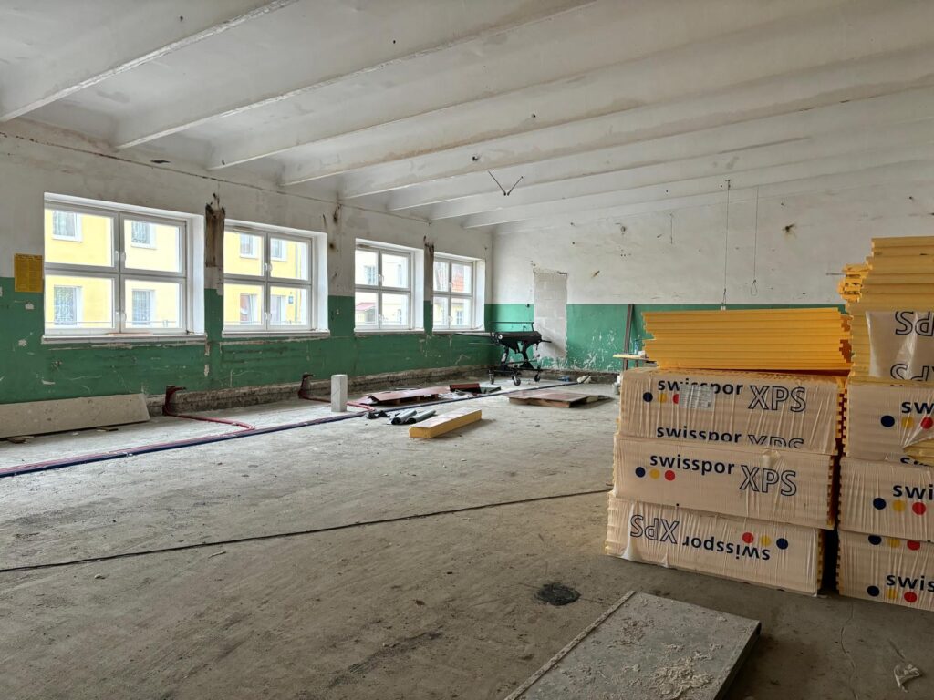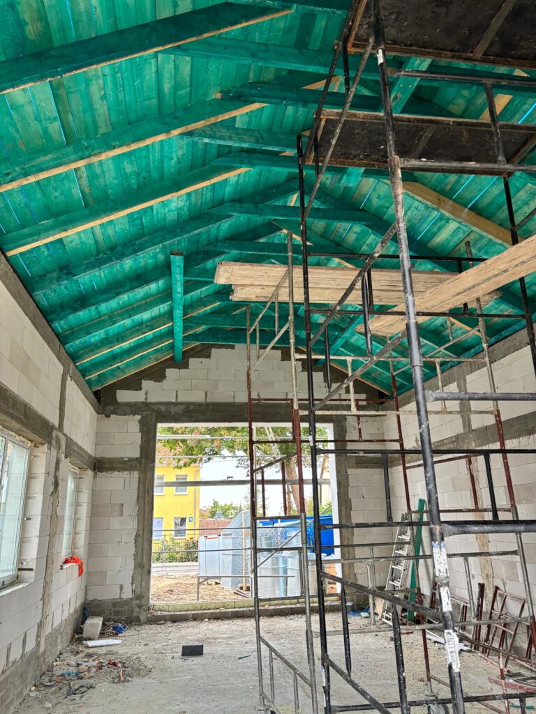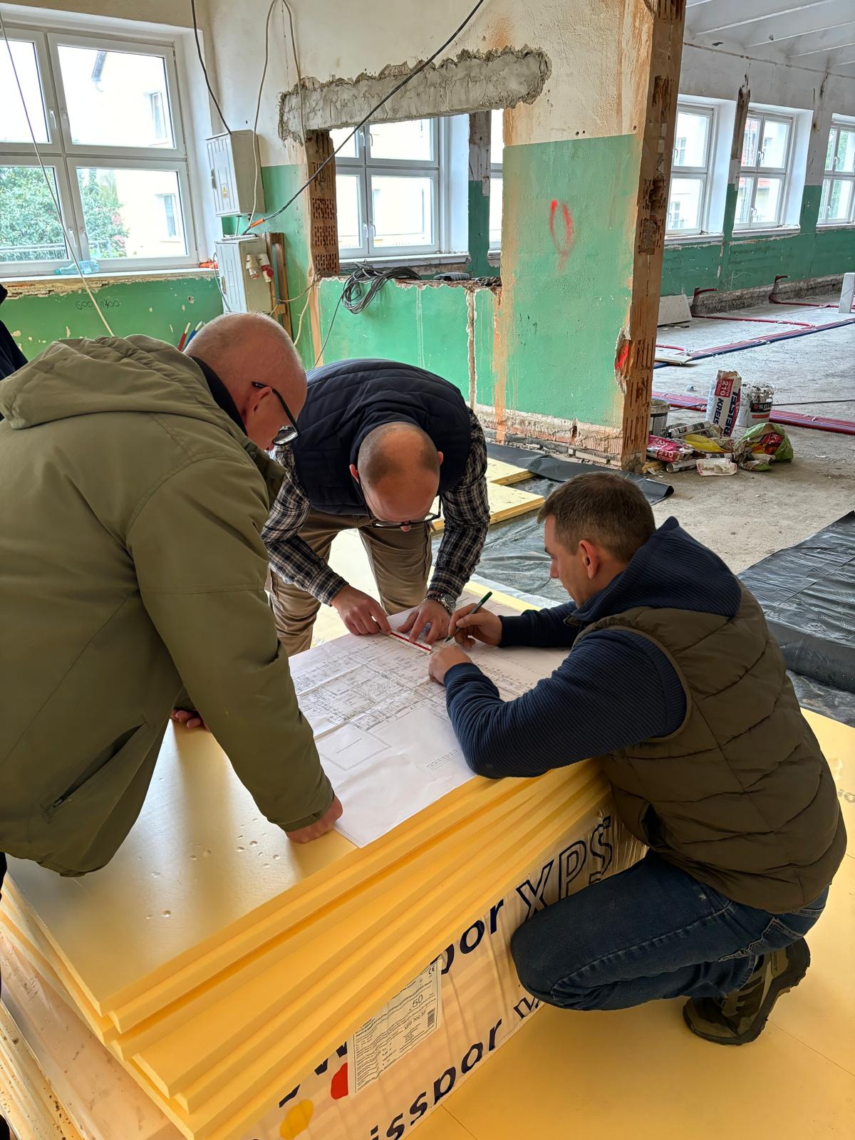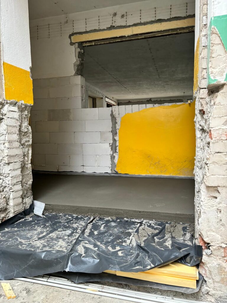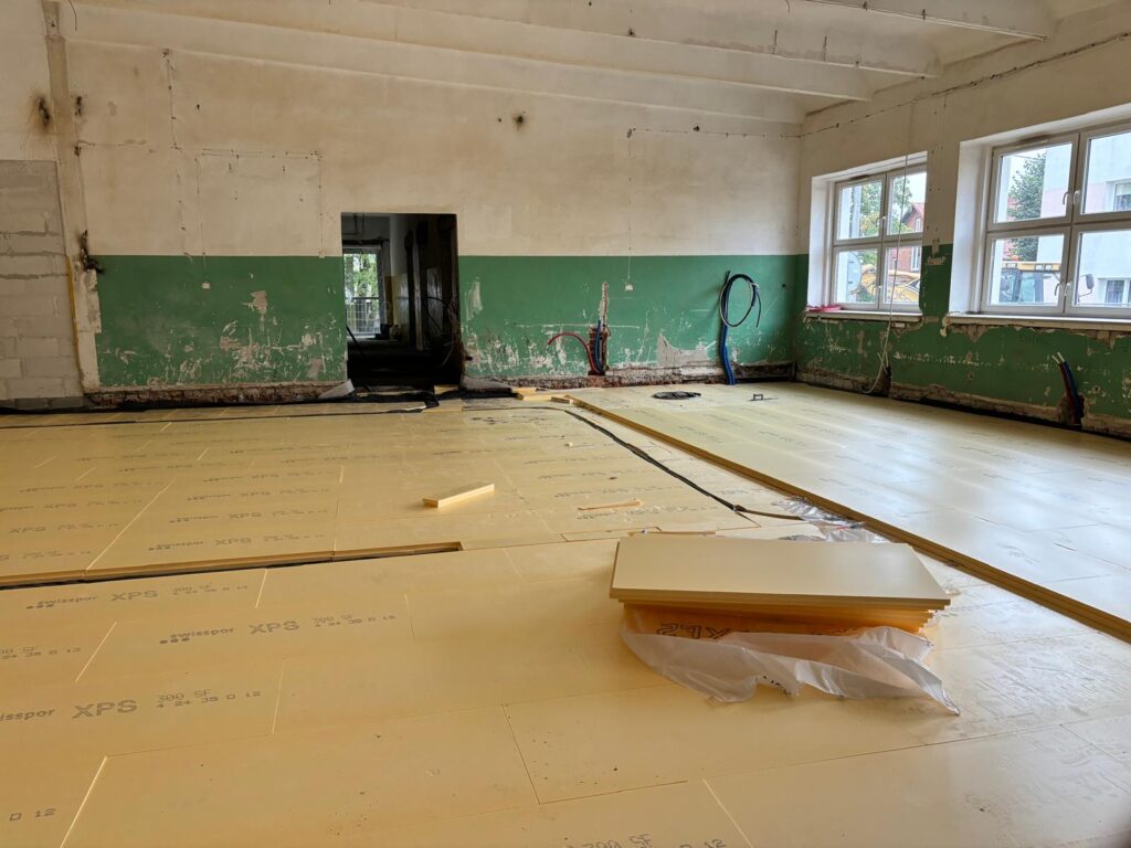 Budynek naszego BCU powoli nabiera kształtów – trwa przebudowa i remont pomieszczeń wewnątrz parteru, przebudowa otworów okiennych i drzwiowych z wymianą stolarki okiennej i drzwiowej oraz wymiana posadzek.