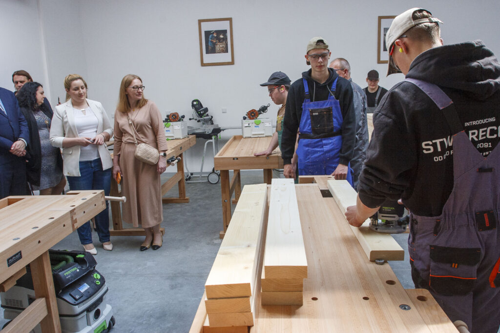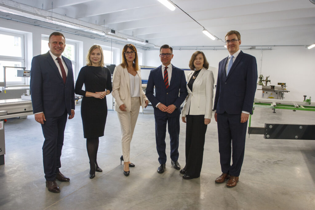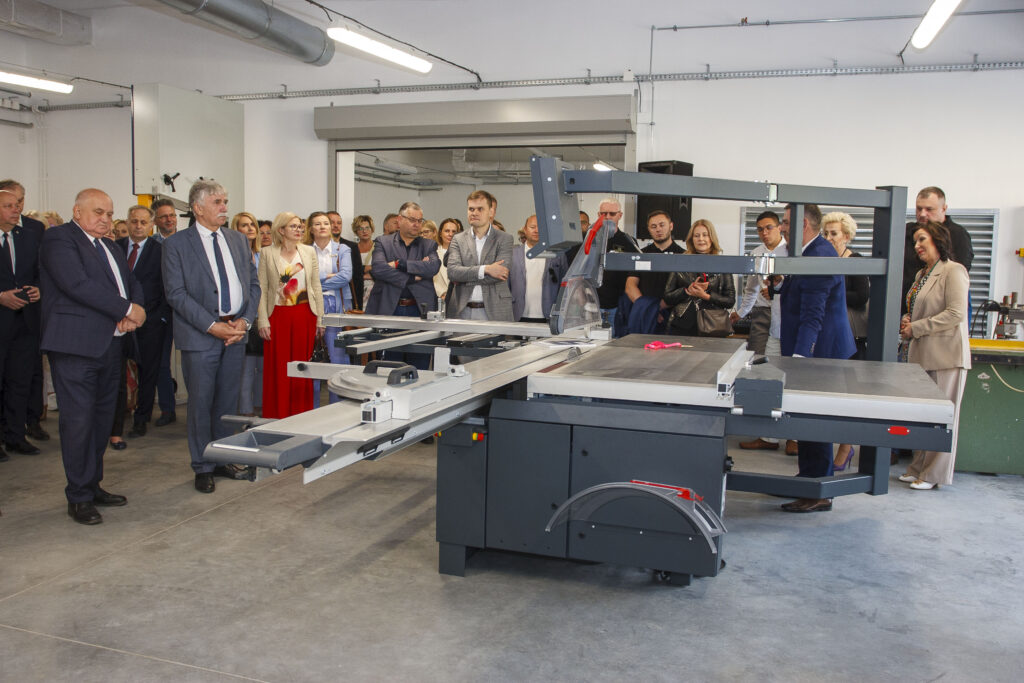 Uroczystość rozpoczęła się od zwiedzania nowoczesnej infrastruktury centrum, w której zgromadzono innowacyjne rozwiązania technologiczne i specjalistyczne wyposażenie, pozwalające na praktyczne kształcenie zawodowe w warunkach odpowiadających realiom przemysłu meblarskiego. Goście mieli okazję zapoznać się z ofertą kursów, pokazami pracy na nowoczesnym sprzęcie oraz spotkać się z uczniami i nauczycielami zaangażowanymi w funkcjonowanie centrum.