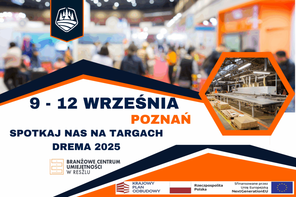Branżowe Centrum Umiejętności (BCU) w Reszlu zaprezentuje swoją ofertę podczas Międzynarodowych Targów Maszyn, Narzędzi i Komponentów dla Przemysłu Drzewnego i Meblarskiego – DREMA 2025, które odbędą się w dniach 9–12 września 2025 w Poznaniu.