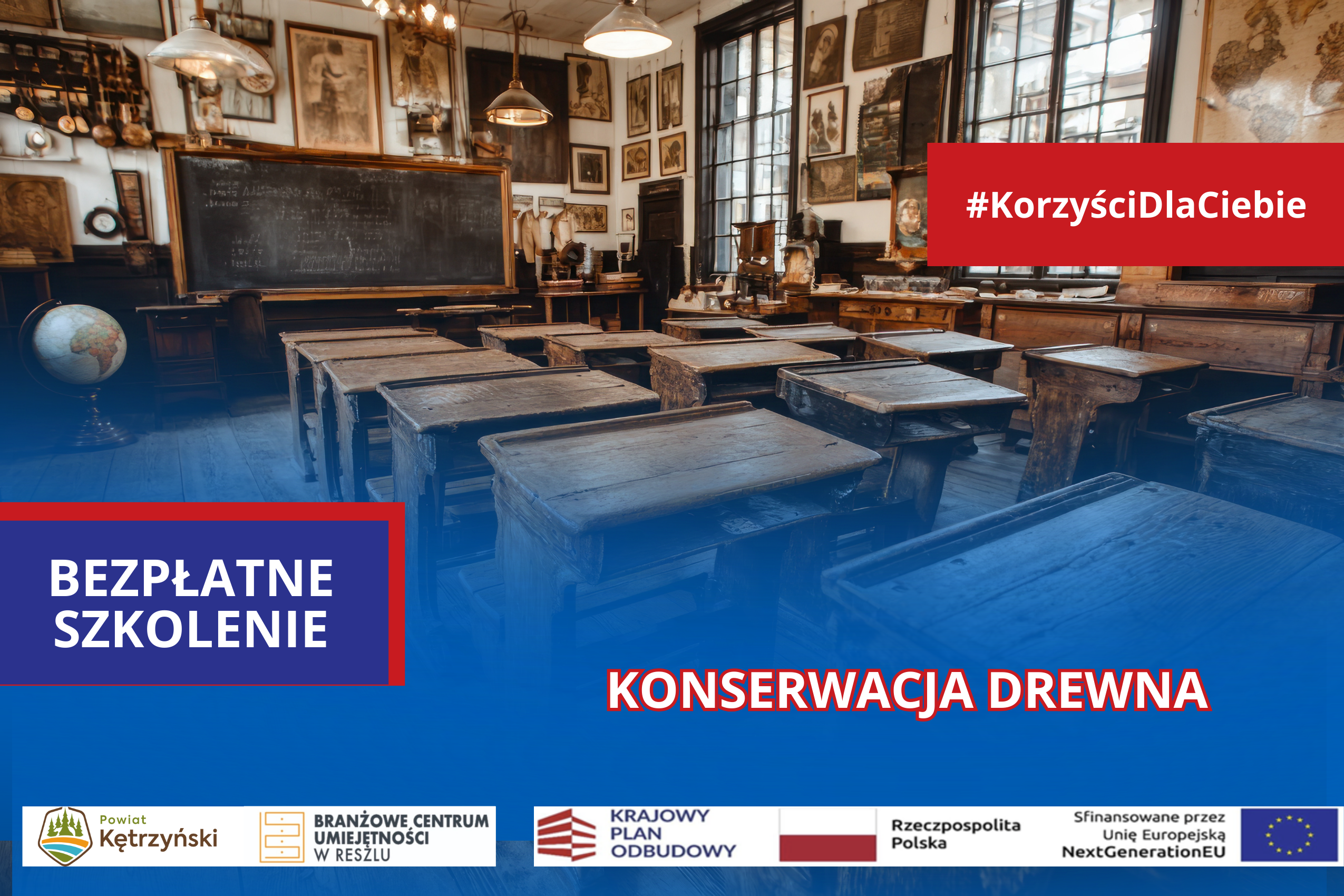 Branżowe Centrum Umiejętności w Dziedzinie Przemysłu Meblarskiego w Reszlu serdecznie zaprasza uczniów szkół ponadpodstawowych do wzięcia udziału w bezpłatnym szkoleniu pt.: „Konserwacja drewna”, które odbędzie się