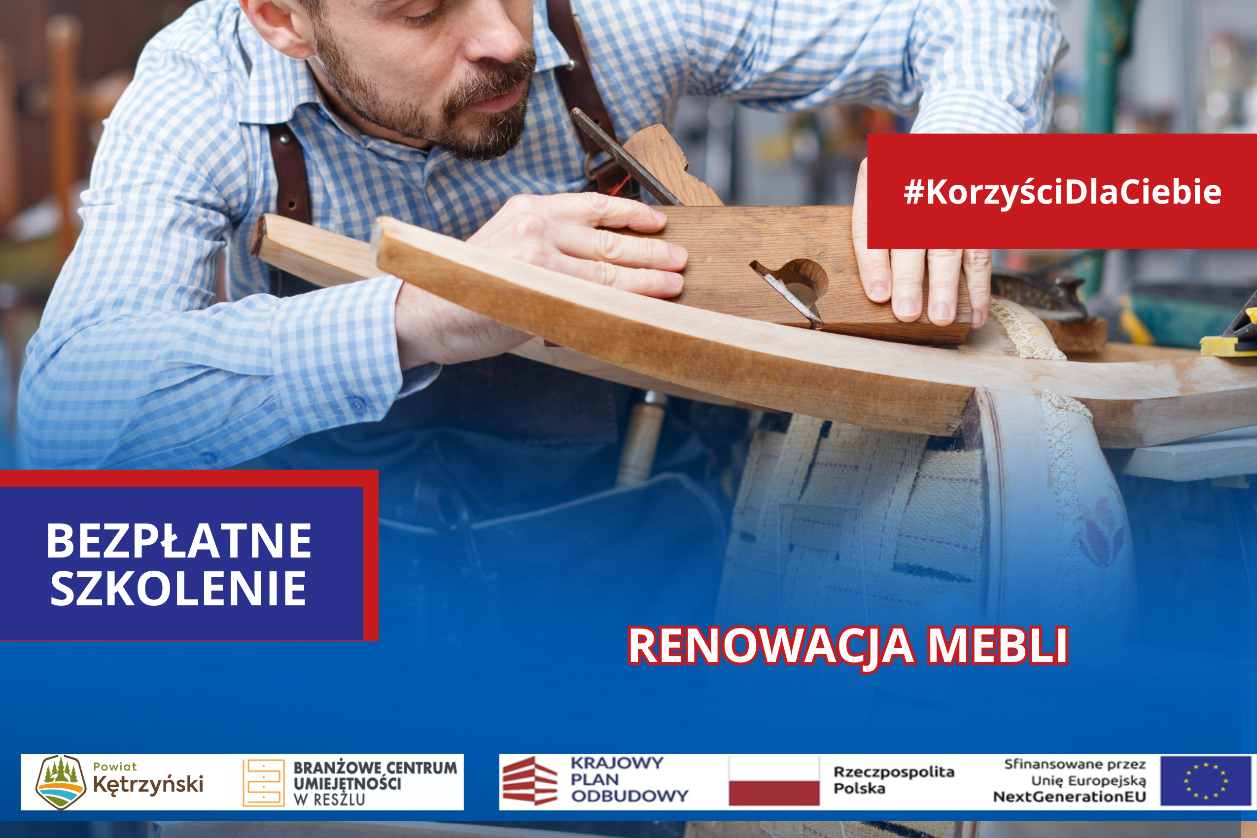 Branżowe Centrum Umiejętności w Dziedzinie Przemysłu Meblarskiego w Reszlu serdecznie zaprasza uczniów szkół ponadpodstawowych do wzięcia udziału w bezpłatnym szkoleniu pt.: „Renowacja mebli”, które odbędzie się