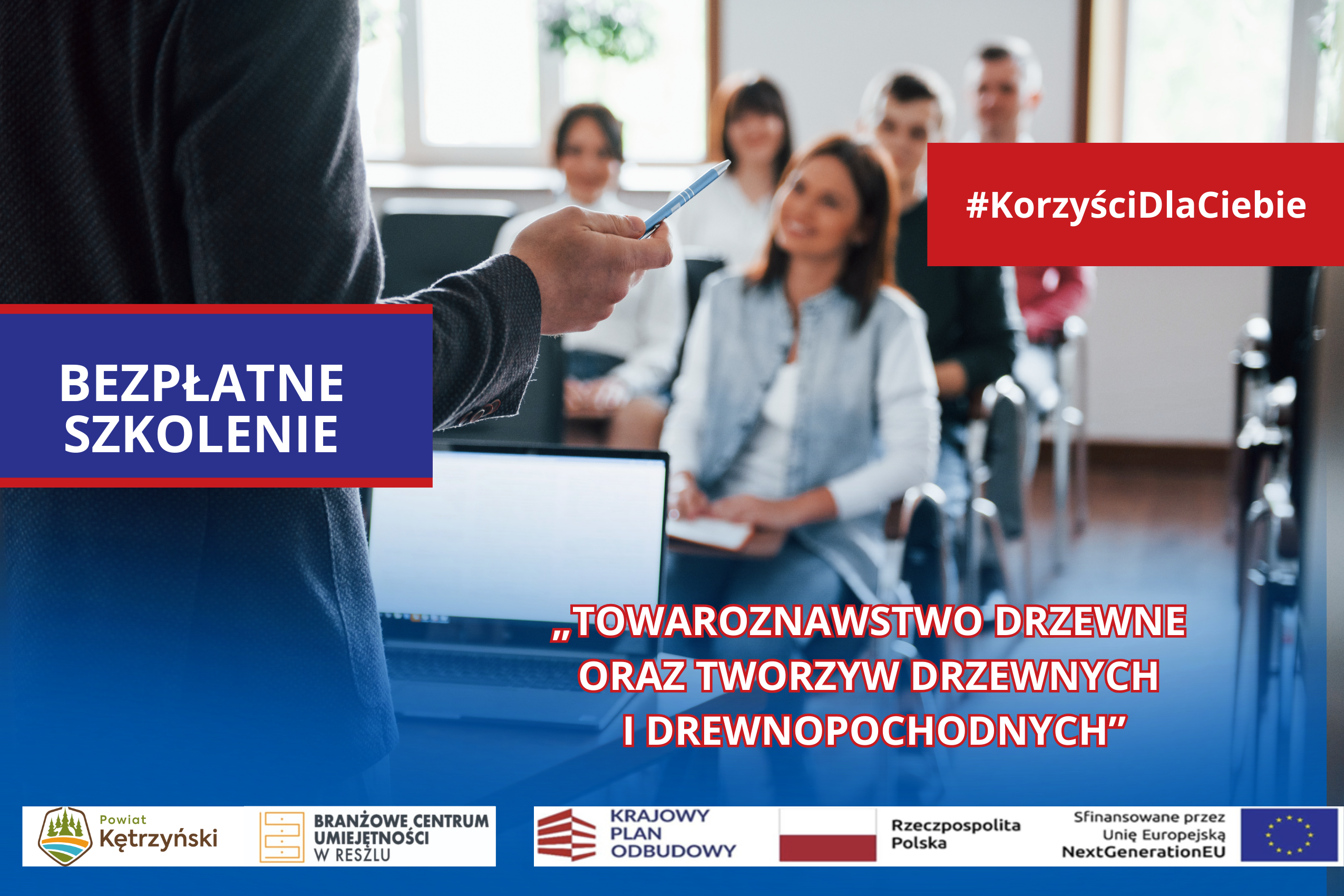 Branżowe Centrum Umiejętności w Dziedzinie Przemysłu Meblarskiego w Reszlu serdecznie zaprasza osoby dorosłe od 25 roku życia (włącznie) do 64 lat (włącznie), do wzięcia udziału w bezpłatnym szkoleniu pt.: „Towaroznawstwo drzewne oraz tworzyw drzewnych i drewnopochodnych”, które odbędzie się wyłącznie w weekendy, w dniach: 13.03.2026 r.,